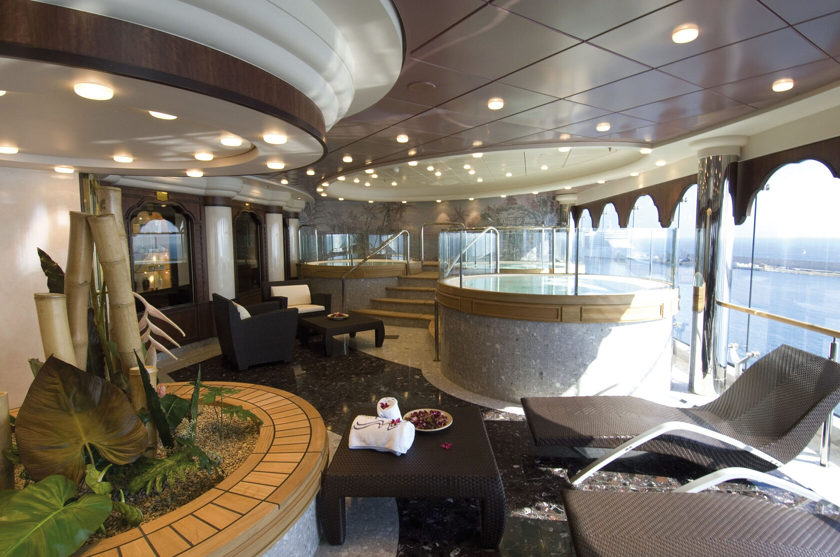MSC Aurea Spa – это настоящий балийский SPA в открытом море, 20 видов массажа, 19 процедур для тела и лица, термальная зона, салон красоты, Spa-бар с витаминными напитками.
